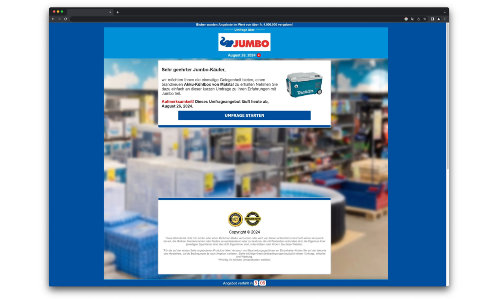 Du hast Glück! Oder doch nicht? Gerade habe ich eine E-Mail von Jumbo bekommen, in der steht, dass ich 8.700 Punkte gesammelt habe und mir eine coole Makita Kühlbox sichern kann. Klingt doch super, oder? Aber Vorsicht: Das ist ein klassischer Betrugsversuch!