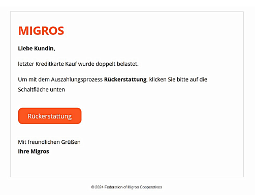 Die Kapo Zürich warnt: Eine neue Phishing-Welle rollt über die Schweiz. Betrüger verschicken gefälschte E-Mails, in denen sie eine angebliche doppelte Abbuchung versprechen und um Ihre Bankdaten bitten.