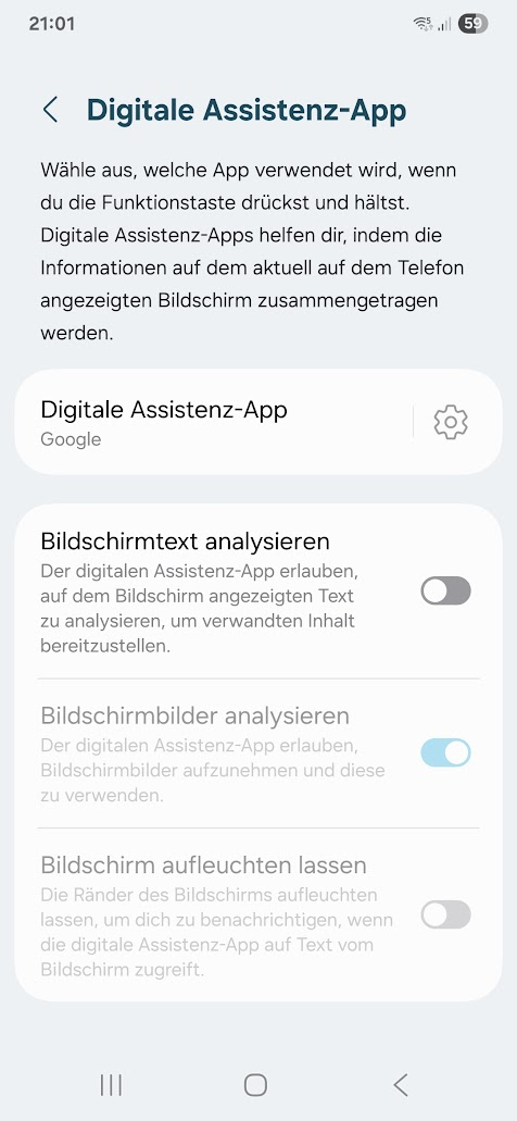 - Folgende Punkte würde ich deaktivieren: Hey Google und Voice Match komplett deaktivieren; Displaykontext – Bildschirmtext analysieren deaktivieren; Gemini auf dem Sperrbildschirm alles ausschalten