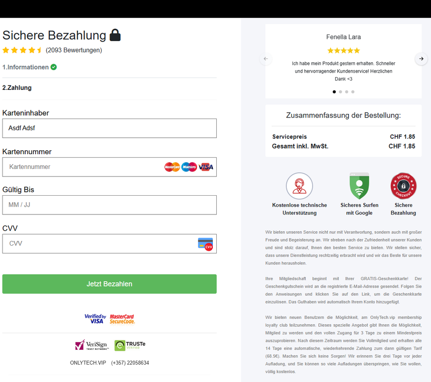 - Gefälschte Kundenbewertungen: Positive Bewertungen sollen Vertrauen erwecken.